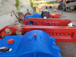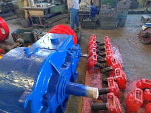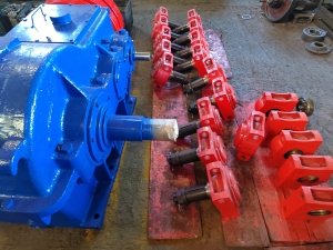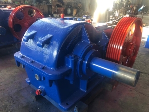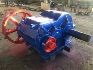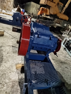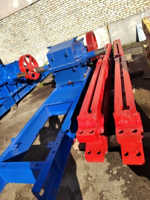 На концах ведущего вала насажены ведомый шкив клиноремённой передачи и шкив тормоза. На оба конца ведомого вала насажены кривошипы.