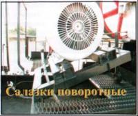 Поворотные салазки предназначены для крепления электродвигателя, обеспечивают быструю смену и натяжение клиновидных ремней. Выполнены в виде рамы, которая шарнирно укреплена на заднем конце рамы станка-качалки в трёх точках, а на большегрузных СК (длина хода свыше 3,5, и) — в четырёх и прикреплённых к ней поперечно болтами двух салазок, на которые устанавливается электро- двигатель. Поворотные салазки поворачиваются вращением ходового винта.